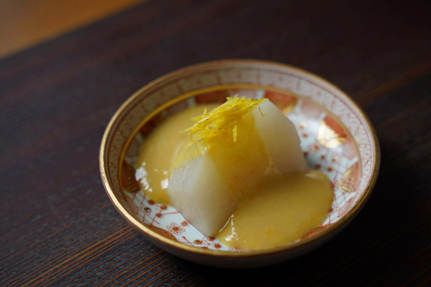 The soft comfort of steamed turnip, the delicate sweetness of lily bulbs, and a bright trace of yuzu that lingers at the finish.